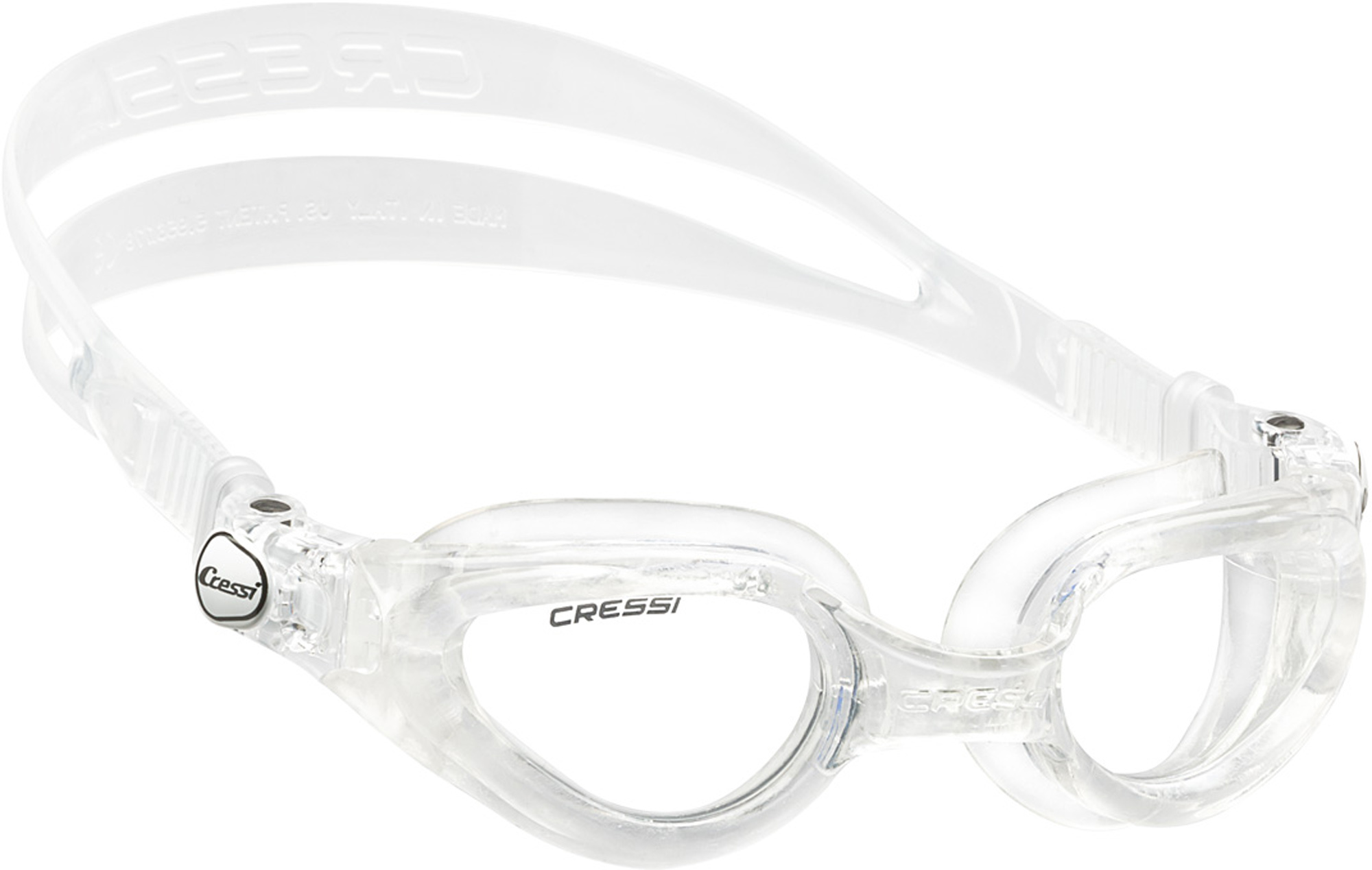 The Right Goggles feature a classic round lens shape. The lenses are also slightly curved which provides excellent peripheral vision. The TPR gaskets around the lenses form a comfortable, watertight seal around the eye socket. The lenses feature external anti-scratch treatment, UV protection and internal anti-fog treatment. The headband is made of 100% hypoallergenic silicone for maximum comfort and fit. The strap and buckle is also interchangeable with all other goggles and masks in the Cressi Swim Line.