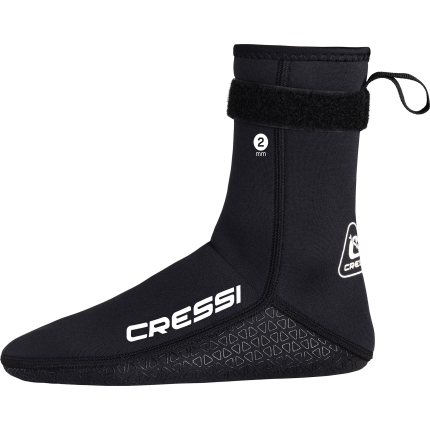 These socks for fins with strap or foot pocket are made of soft highly elastic nylonlined new camouflage neoprene 3 mm. They prevents heat loss and keep feet warm. The smooth skin neoprene on the ankle allows maximum adherence between the sock and the leg of the wetsuit, reducing the passage of water. The sole is entirely non-slip. The construction of the blind stitch seam further improves comfort and aesthetics