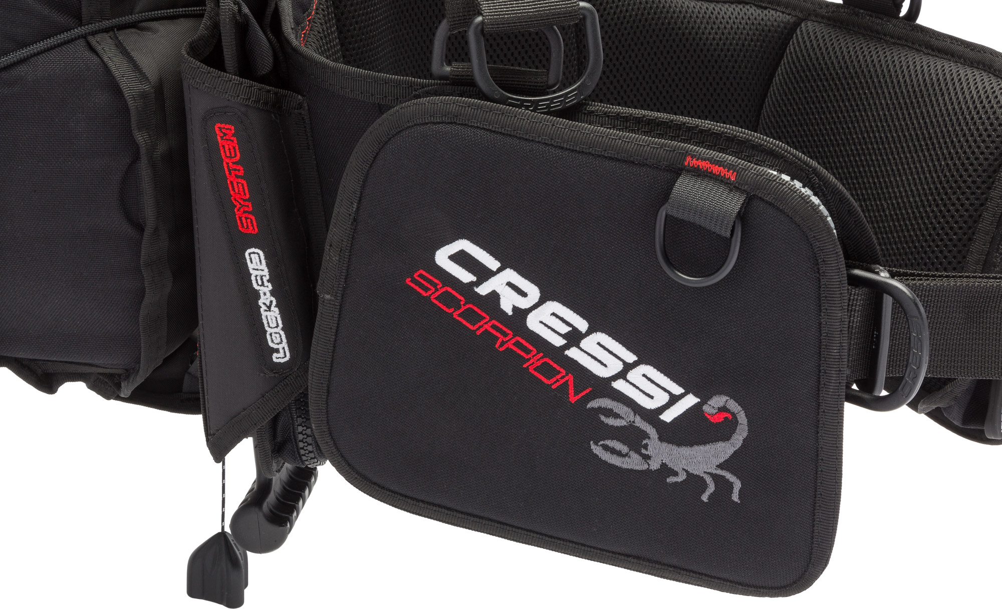 • The top of the air bladder is attached using flexible loops, allowing it to adapt comfortably whether you’re diving in a wetsuit or drysuit.