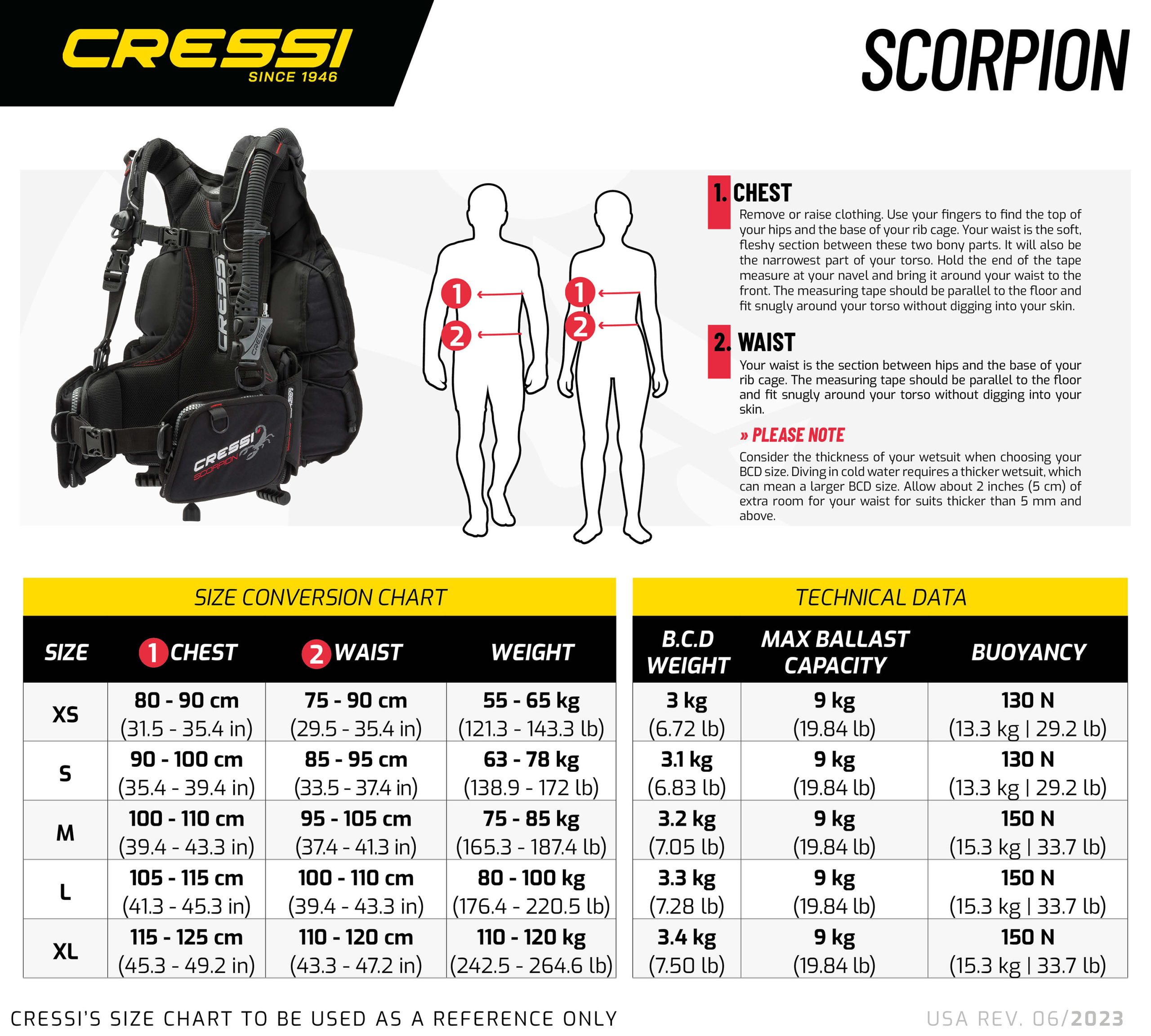 • Features Cressi’s Flat Lock Aid integrated weight system for secure, quick-release weight management.