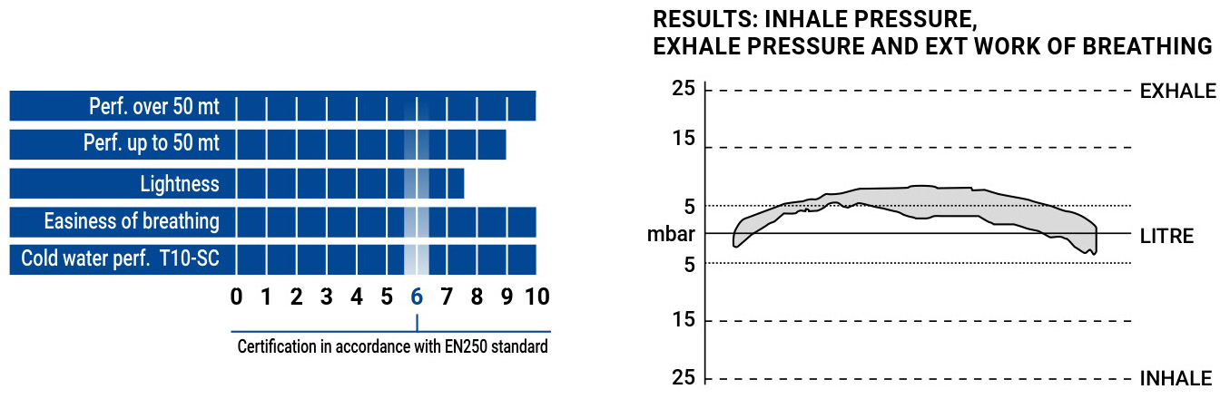 • With minimal inhalation effort, the T10 SC delivers a smooth, natural breathing experience and outperforms most regulators on the market.