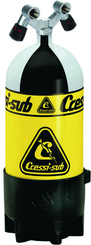 Cressi tanks are made of high quality and safety standards. They come in 5 different capacities: 5, 10, 12, 15 and 18 litres. On the other hand, the valves are made by cressi-sub and were the first easy to assemble and disassemble valves to appear on the market. They are strong and reliable and are made from really top quality materials. The inner air passages were carefully studied in the design so as to guarantee top performance even, and above all, with the top performance regulators. The valve design ensures an excellent grip, facilitating opening and closing of the tank. A brand new, exclusive slot system means you can check whether the faucet is open or closed at a glance (yellow = faucet closed, red = faucet open). The regulator connection incorporates a threaded insert, which means it can equally be used for both int bracket or din connection. The valves are modular you can easily change from a single connection valve to dual connection valve and vice versa. The cressi-sub valves passed the strict tests imposed by european standards with flying colours thus receiving the prestigious ce certification