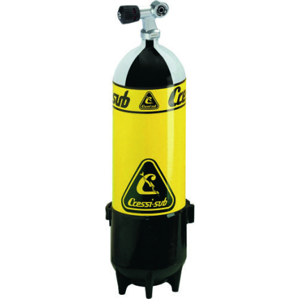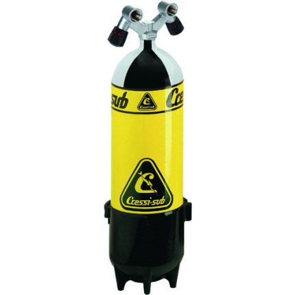 Cressi tanks are made of high quality and safety standards. They come in 5 different capacities: 5, 10, 12, 15 and 18 litres. On the other hand, the valves are made by cressi-sub and were the first easy to assemble and disassemble valves to appear on the market. They are strong and reliable and are made from really top quality materials. The inner air passages were carefully studied in the design so as to guarantee top performance even, and above all, with the top performance regulators. The valve design ensures an excellent grip, facilitating opening and closing of the tank. A brand new, exclusive slot system means you can check whether the faucet is open or closed at a glance (yellow = faucet closed, red = faucet open). The regulator connection incorporates a threaded insert, which means it can equally be used for both int bracket or din connection. The valves are modular you can easily change from a single connection valve to dual connection valve and vice versa. The cressi-sub valves passed the strict tests imposed by european standards with flying colours thus receiving the prestigious ce certification