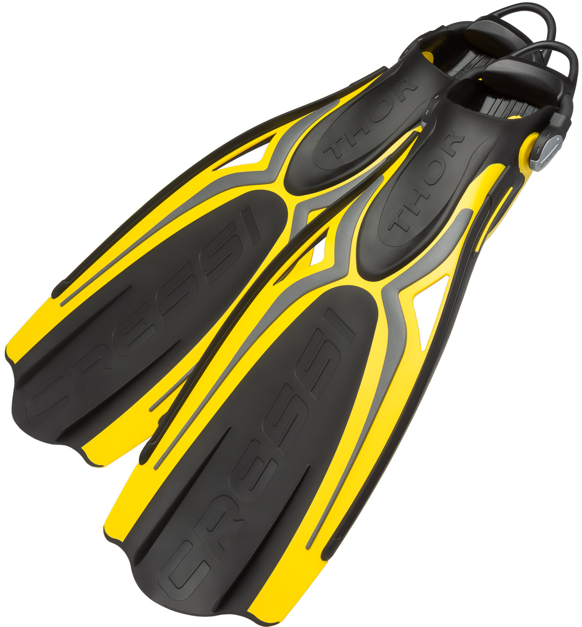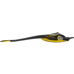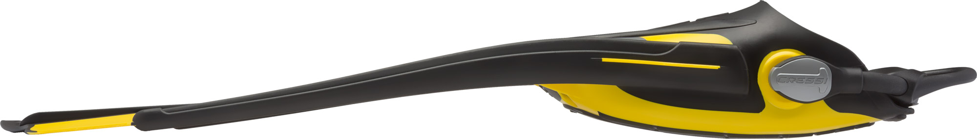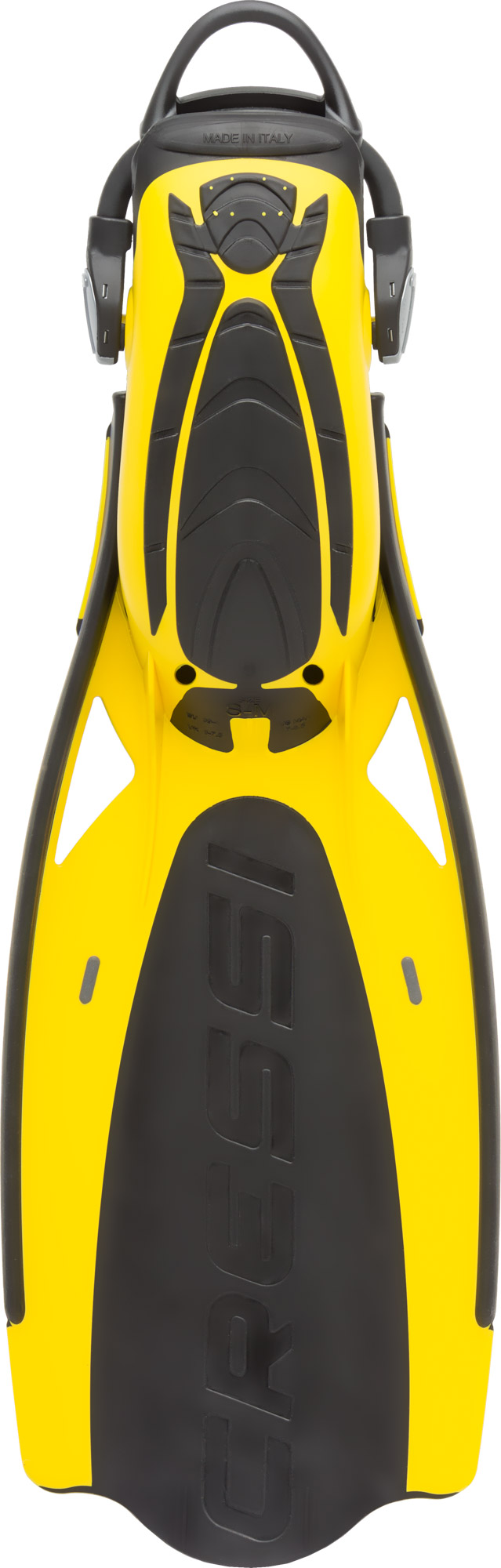 Brand new design for this extremely effective and yet very easy to use fin. The special arched profile of the fins combined with the two central ribs promote a significant flow convection effect, known as “spoon effect”, which stabilises and boosts propulsion. Two lateral holes discharge the negative forces typically associated with this area and at the same time make for enhanced stability. The blades are moulded from two different materials for improved reactivity. These fins are perfect for scuba diving, whether you are an experienced diver or a novice