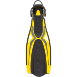 Brand new design for this extremely effective and yet very easy to use fin. The special arched profile of the fins combined with the two central ribs promote a significant flow convection effect, known as “spoon effect”, which stabilises and boosts propulsion. Two lateral holes discharge the negative forces typically associated with this area and at the same time make for enhanced stability. The blades are moulded from two different materials for improved reactivity. These fins are perfect for scuba diving, whether you are an experienced diver or a novice