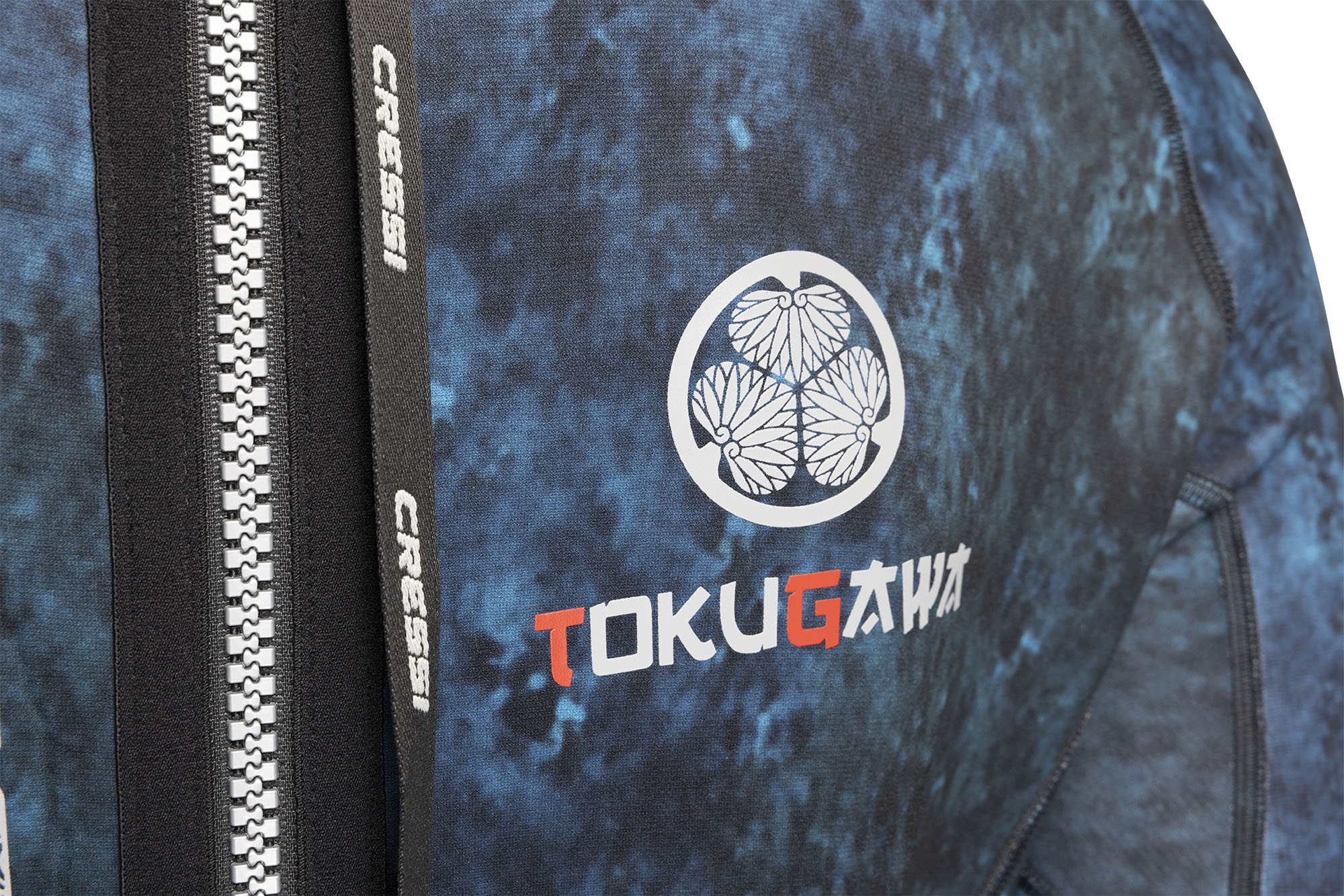 Designed for blue water spearfishing tokugawa, named after the japanese feudal shogunate, is a one-piece 3 mm thick wetsuit, perfect for spearfishing, freediving and swimming, as well as for open water and pool training. The unique camouflage of this wetsuit is appropriate for different aquatic environments, from the blue waters of the caribbean sea to the greener tones of north american waters. The wetsuit’s graphics provide the ultimate in camouflage for all environments. Tokugawa, which is made of elastic, flexible, comfortable and soft neoprene, has an anatomically designed cut specific to cressi wetsuits, with preformed arms and legs that improve wearability and movement in the water. The chest and the knee pad reinforcements are designed specifically for spearfishing. The dura stretch nylon lining improves the wetsuit’s elasticity, comfort and durability