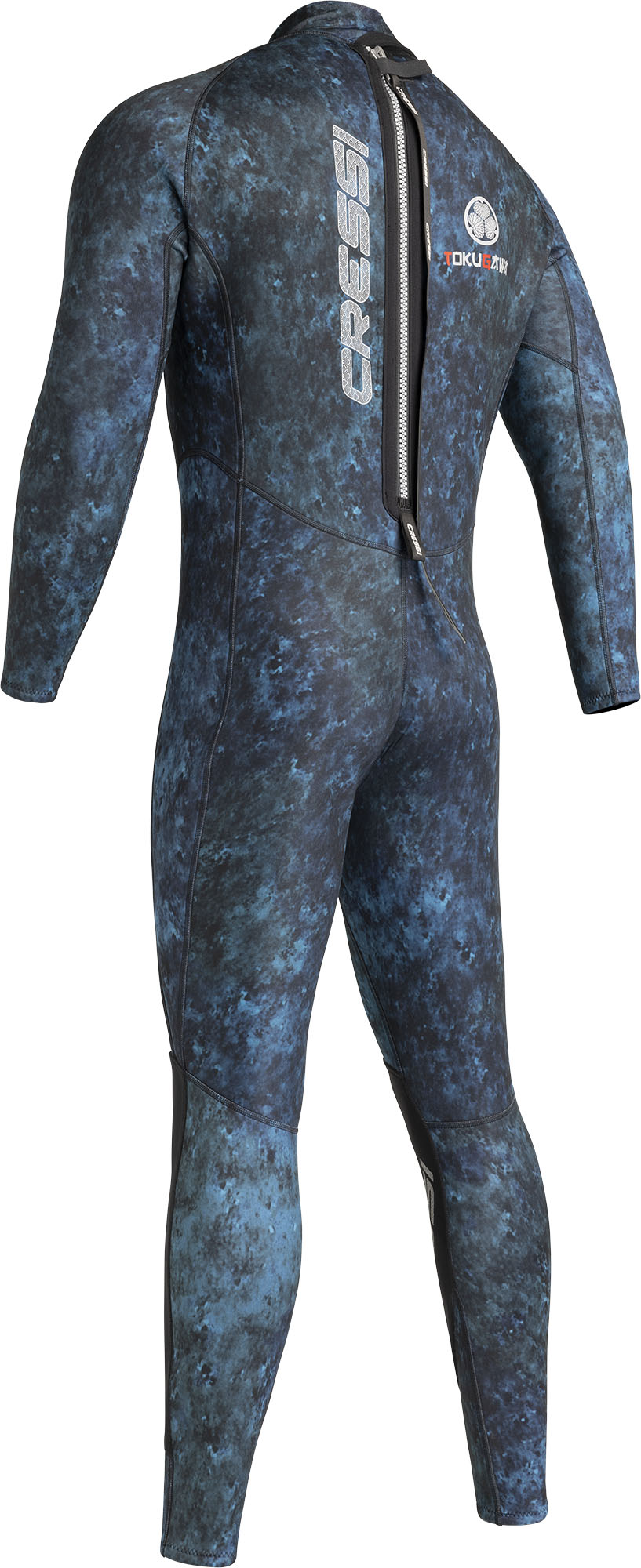 Designed for blue water spearfishing tokugawa, named after the japanese feudal shogunate, is a one-piece 3 mm thick wetsuit, perfect for spearfishing, freediving and swimming, as well as for open water and pool training. The unique camouflage of this wetsuit is appropriate for different aquatic environments, from the blue waters of the caribbean sea to the greener tones of north american waters. The wetsuit’s graphics provide the ultimate in camouflage for all environments. Tokugawa, which is made of elastic, flexible, comfortable and soft neoprene, has an anatomically designed cut specific to cressi wetsuits, with preformed arms and legs that improve wearability and movement in the water. The chest and the knee pad reinforcements are designed specifically for spearfishing. The dura stretch nylon lining improves the wetsuit’s elasticity, comfort and durability