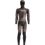 Wetsuit created with the exclusive new cressi camouflage dark digital specter pat, computer designed to make it more difficult for prey to create solid images, thereby confusing the wearer with the background. Preformed anatomical cut. Jacket with padded reinforcement in the chest, smoothskin watertight seals on the hood, wrists, and waist, and reinforced powertex lining at the elbows and waist. High-waisted trousers with watertight smoothskin seals at the ankles and waist, and powertex reinforcements on the knees. Camouflage color: dark-specter