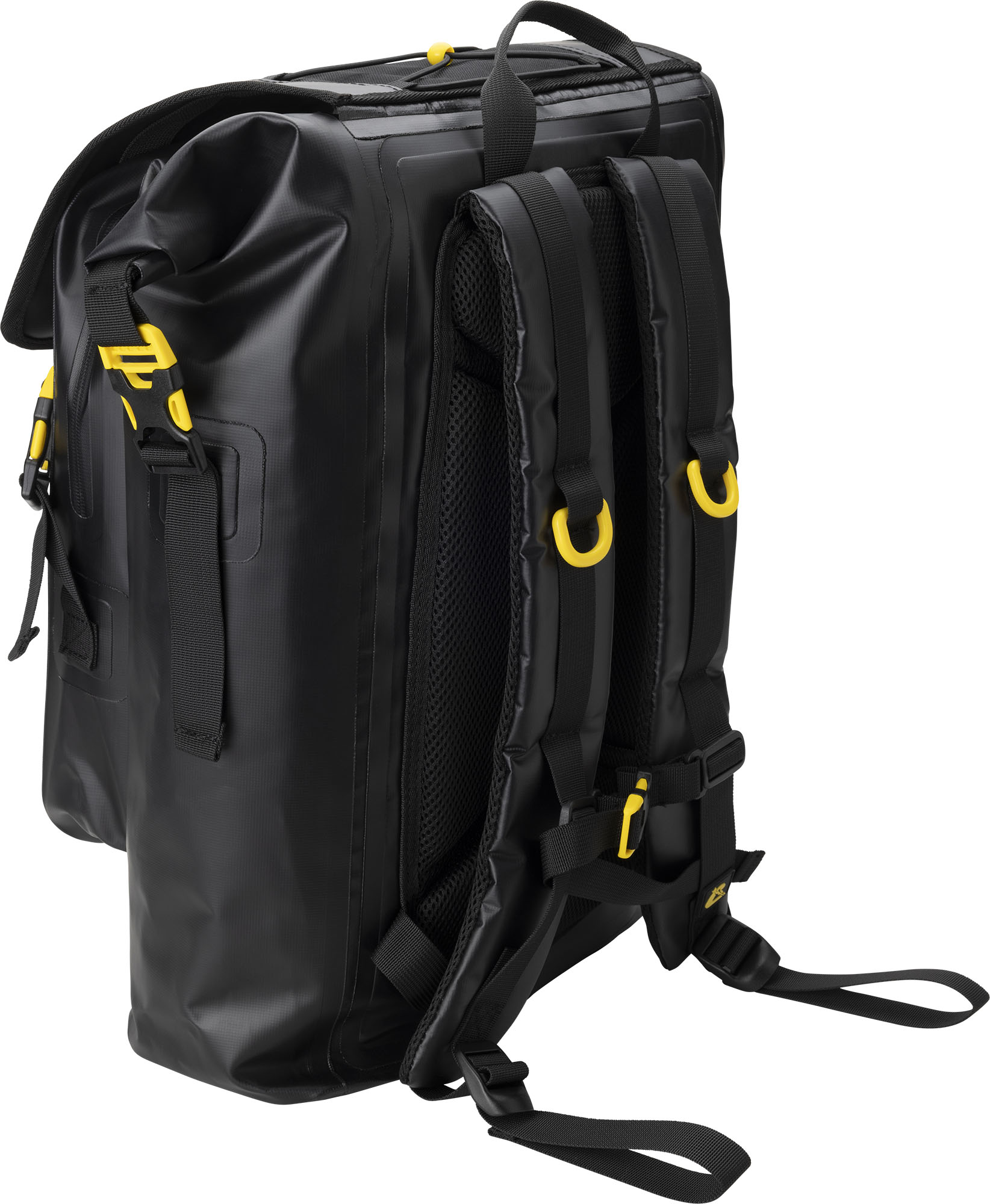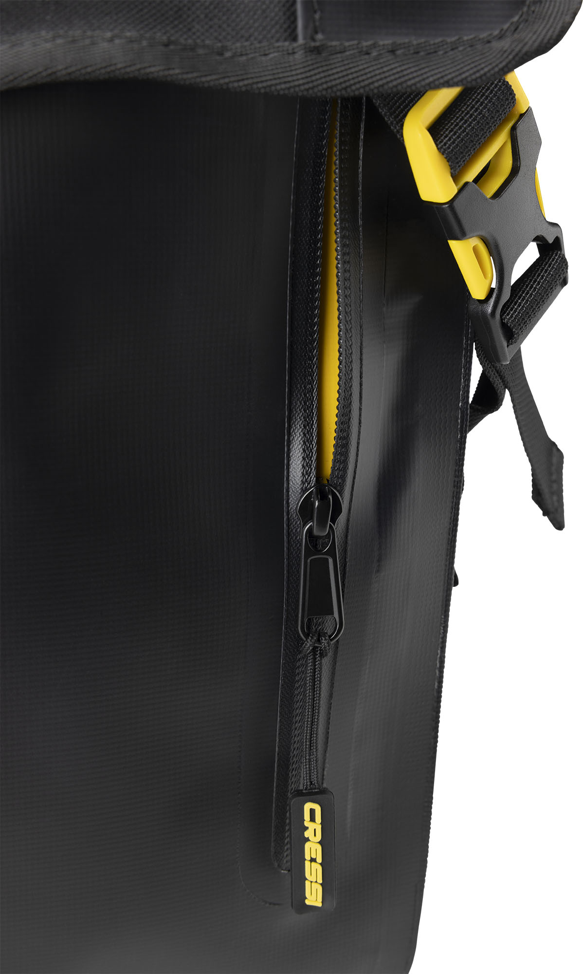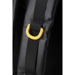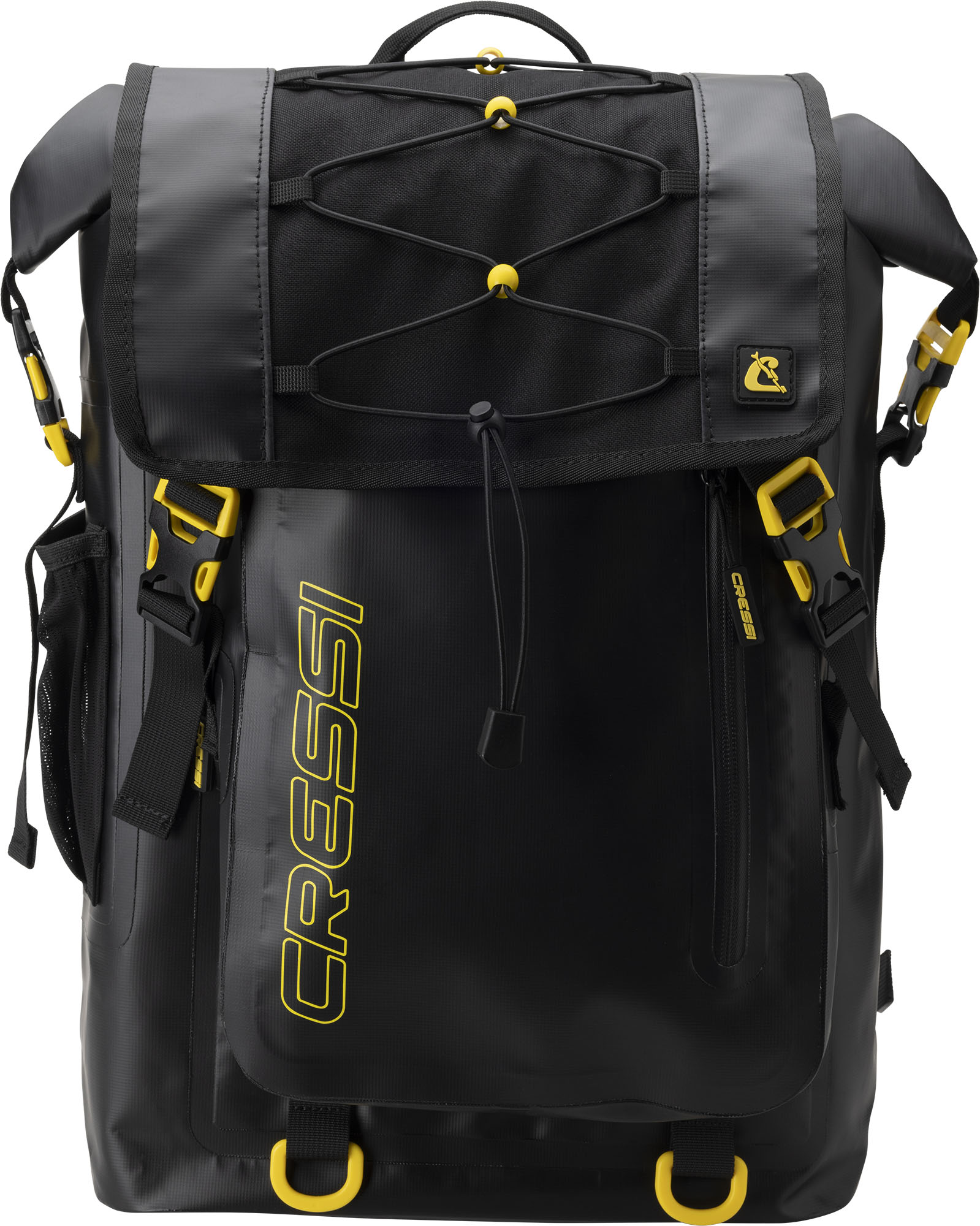 Venom is a rolltop backpack consisting of a waterproof PVC tarpaulin compartment for carrying wetsuits and wet gear. Welded onto the front is a 5-litre compartment, consisting of two pockets, a larger and a smaller one for wallets and small things. The rucksack also has a mesh pocket for bottles, practical D-rings on the bottom for hanging gear and drying the rucksack upside down, and an elastic cord on the top flap cover for carrying extended items.