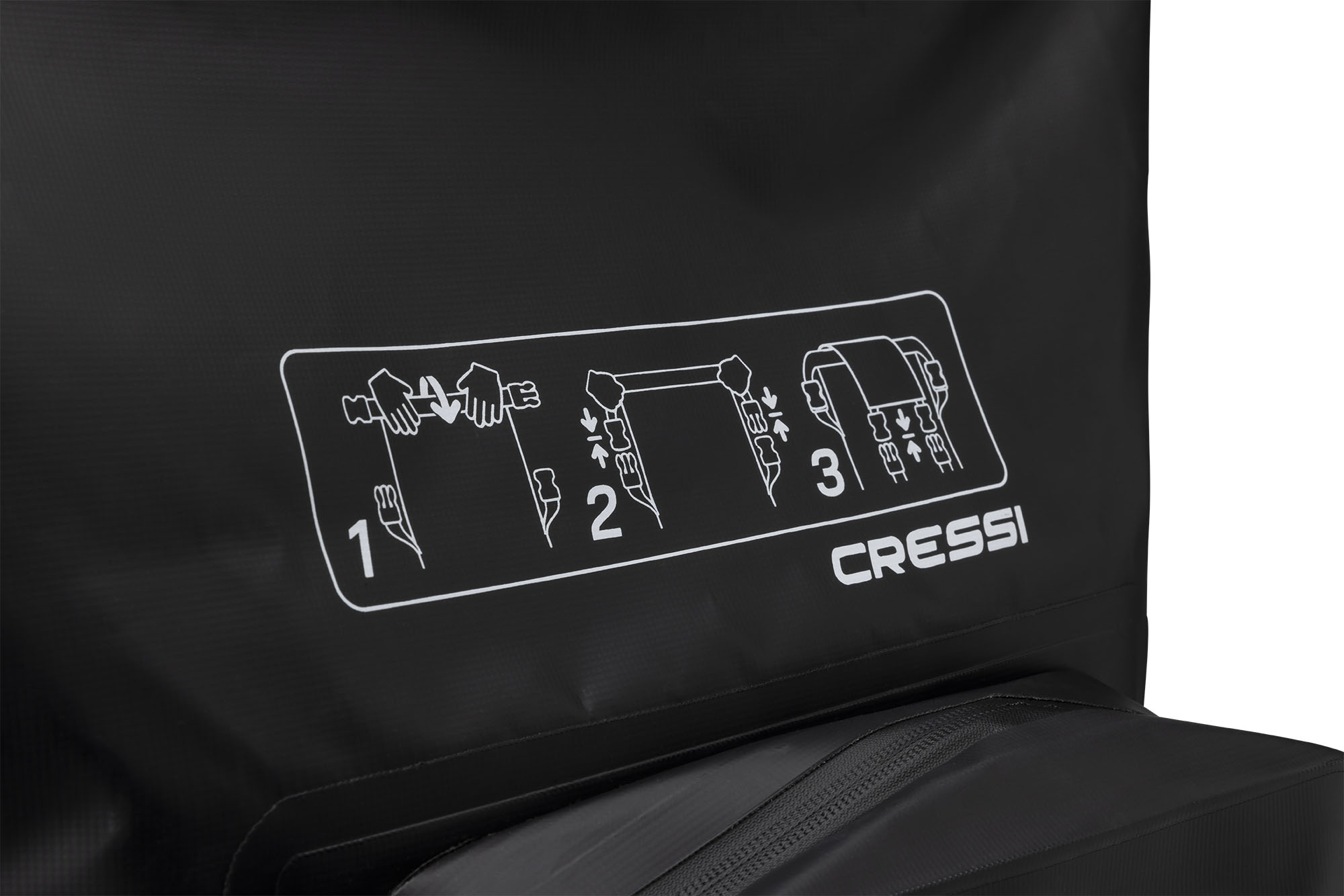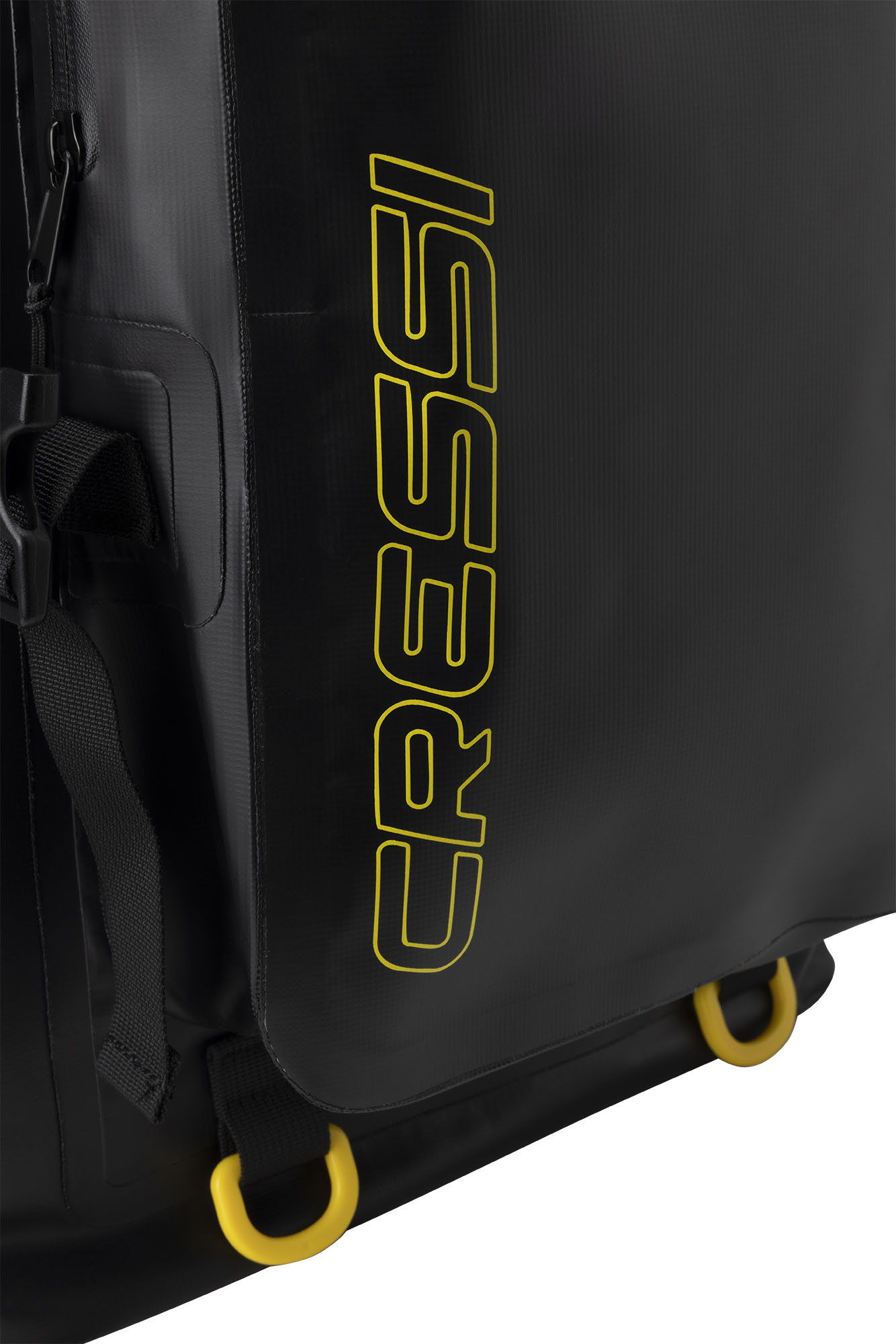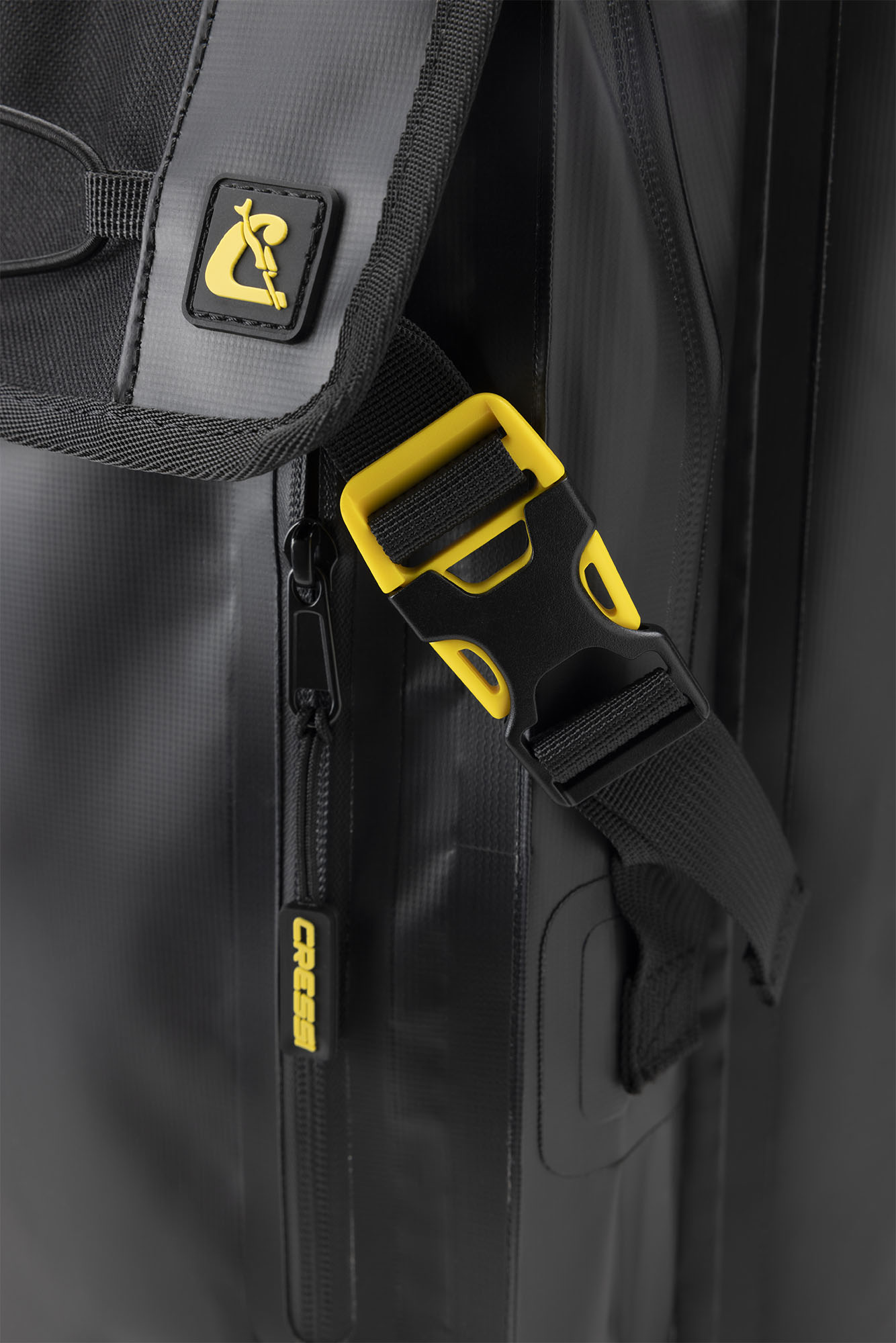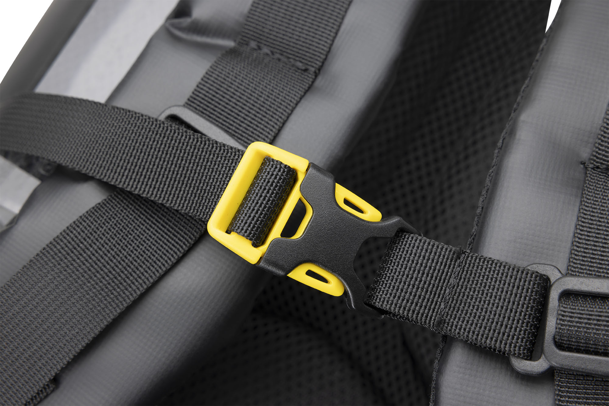 Venom is a rolltop backpack consisting of a waterproof PVC tarpaulin compartment for carrying wetsuits and wet gear. Welded onto the front is a 5-litre compartment, consisting of two pockets, a larger and a smaller one for wallets and small things. The rucksack also has a mesh pocket for bottles, practical D-rings on the bottom for hanging gear and drying the rucksack upside down, and an elastic cord on the top flap cover for carrying extended items.