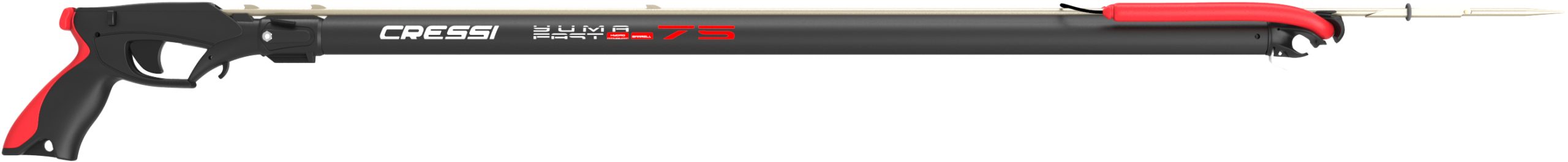Anticorodal black frame with integrated spear guide, grip made of engineering plastic reinforced with glass fibre, integrated soft sternal support. Ultra-light triggering case with release mechanism in aisi 316. Dovetail reel coupling. Head for double elastic with magnetic spear lock: as soon as the spear is put in place, it is held by two magnets mounted in a watertight chamber. This characteristic guarantees maximum speed of reset without the disadvantages of conventional mechanical restraint systems. The speargun is supplied with double 14 mm natural latex band, with dyneema wishbone