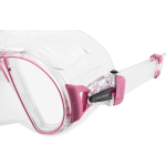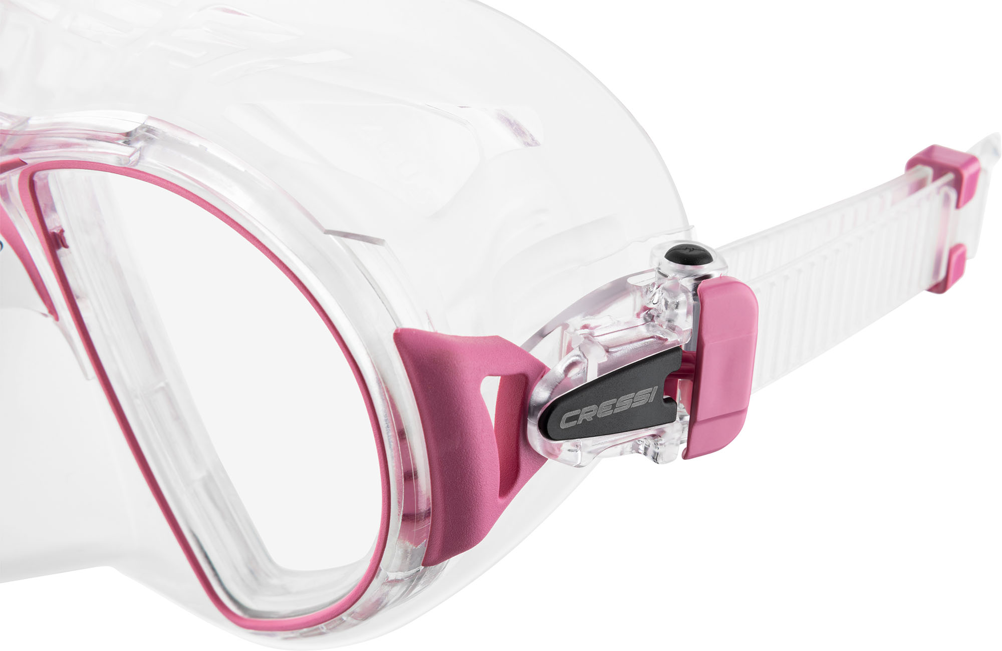 – A patented membrane surrounding the inner nose pocket which acts as a barrier and traps any moisture escaping from the diver’s nose involuntarily when breathing through the mouth. the result is that not only is the moisture channeled away from the lenses, thus avoiding the fogging up of them, but it also reduces the need to compensate for pressure. to further improve the anti-fog effect, cressi suggests, the first times that the dive mask is used, to spray some anti-fog solution or to apply some saliva on the inside of the lenses and then to rinse them with water.