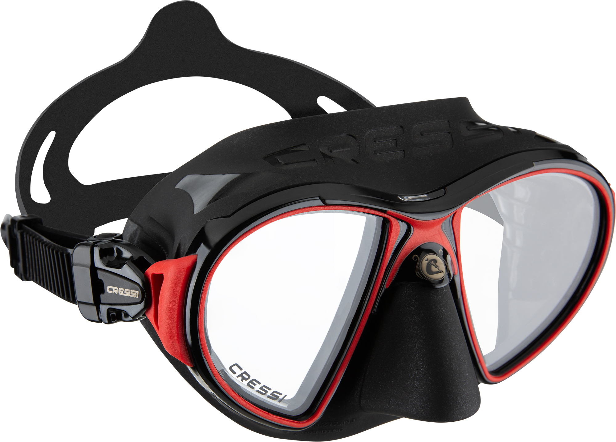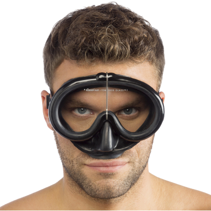 • A patented membrane surrounding the inner nose pocket which acts as a barrier and traps any moisture escaping from the diver’s nose involuntarily when breathing through the mouth. the result is that not only is the moisture channeled away from the lenses, thus avoiding the fogging up of them, but it also reduces the need to compensate for pressure. to further improve the anti-fog effect, cressi suggests, the first times that the dive mask is used, to spray some anti-fog solution or to apply some saliva on the inside of the lenses and then to rinse them with water.