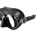 Zeus is the perfect mask for diving. This mask has a particular tapered structure deriving directly from the highly popular nano-mask patent. The same idf-integrated dual frame technology system allows you to join the silicone skirt to the lens frame without major interruptions of the curvature continuity. The result is a mask with an extremely hydrodynamic shape and, visibility being equal, a significantly smaller size. The field of view obtained is particularly wide, laterally and in the lower zone. Thanks to its matte coating the mask’s components all match, enhancing the underwater experience since it prevents reflections in the water that may disturb marine life. The new micrometric adjustable buckles with a larger button allow a more easily regulation also wearing dive gloves. The new strap is made of two different silicone colors